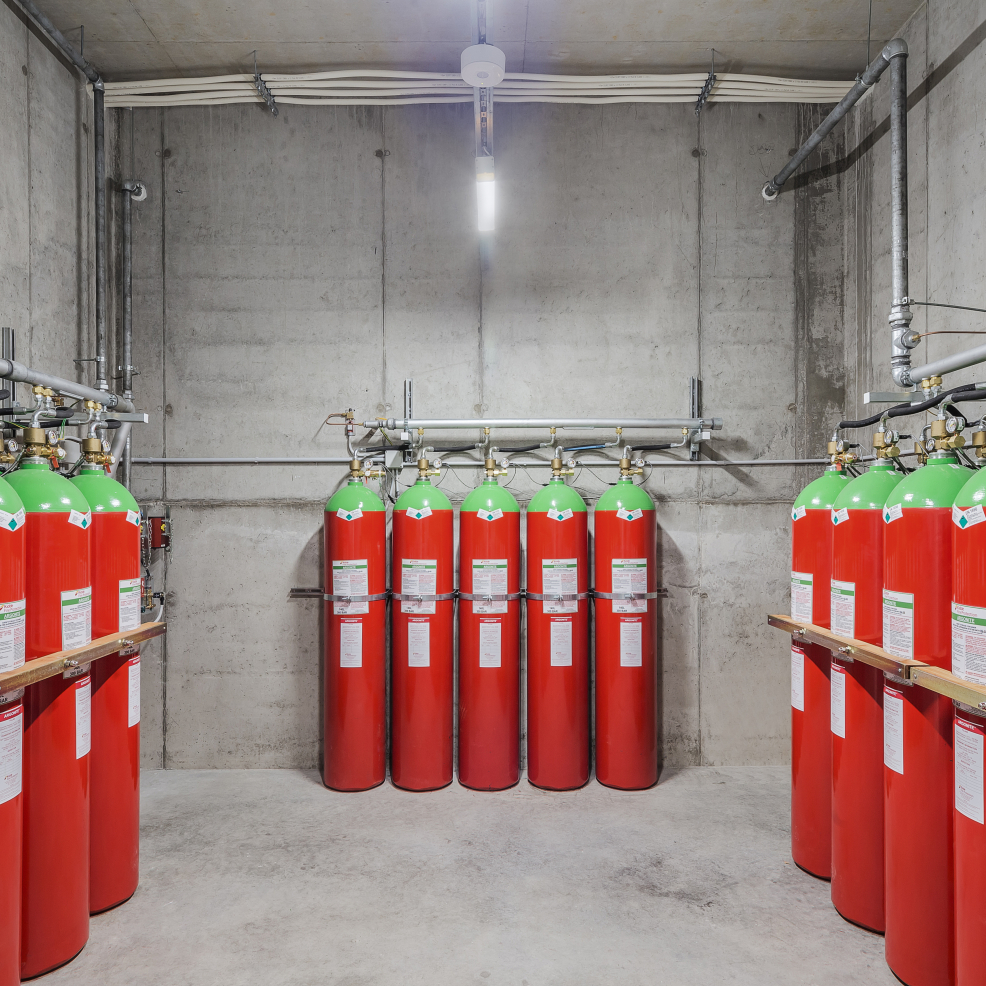 Автоматичне пожежогасіння інертним газом. Інертний газ не шкідливий для IT-обладнання.